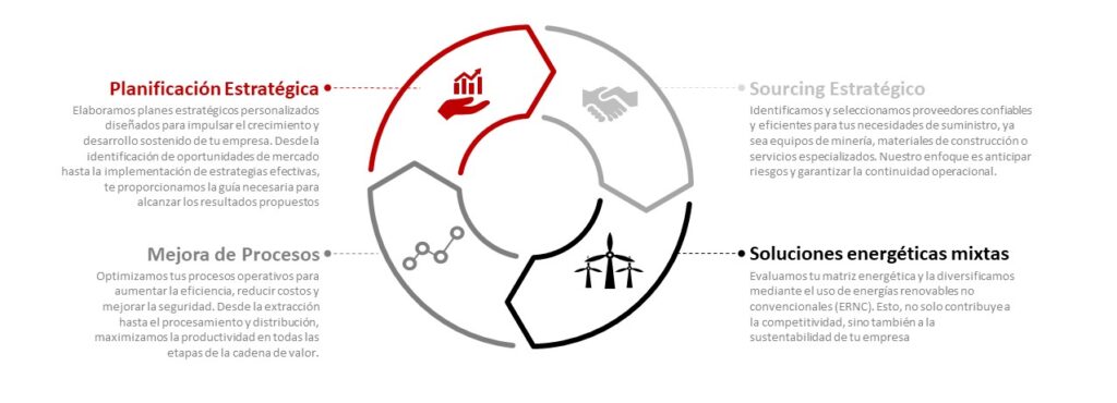- Análisis de mercado: Ofrecemos servicios especializados en investigación y análisis del mercado minero e industrias asociadas, proporcionando información crucial para la toma de decisiones estratégicas..